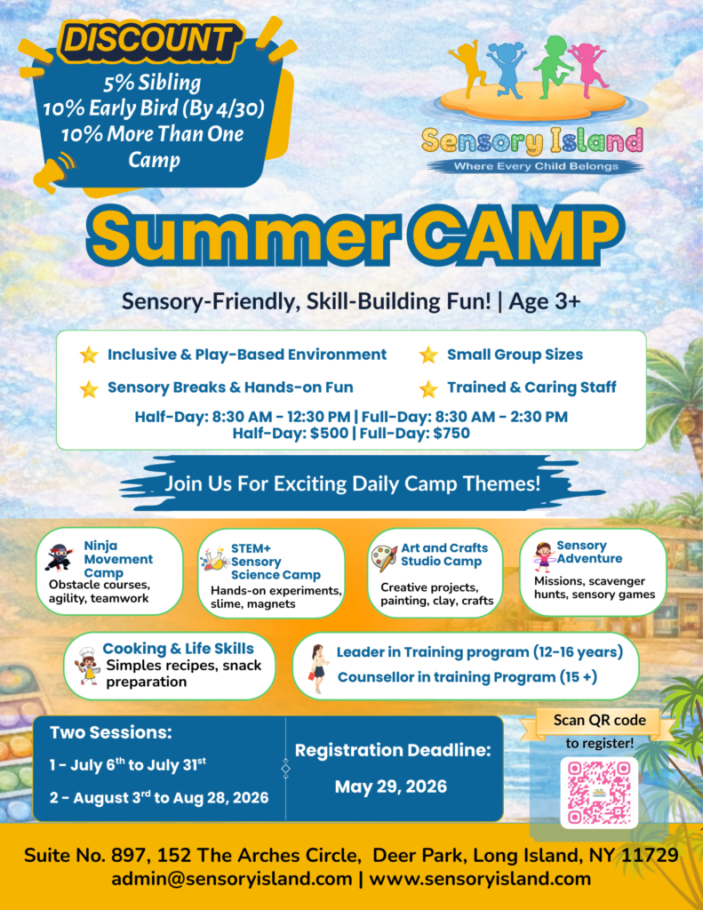 Sensory Island is opening in Spring 2026 as a thoughtfully designed, sensory-friendly space in New York for neurodivergent and sensory-sensitive children, including children with autism and sensory processing needs.